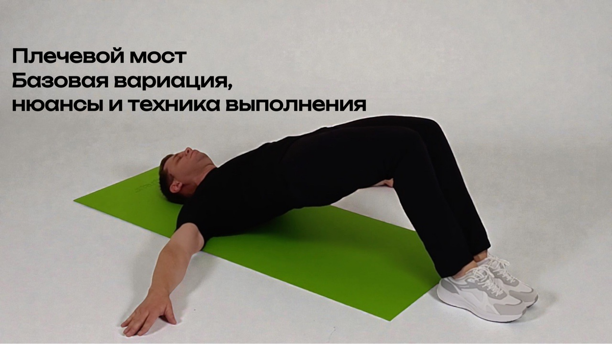 Плечевой мост Рассмотрим базовый вариант упражнения «плечевой мост», благодаря которому можно с невероятной точностью активировать ягодичные мышцы.