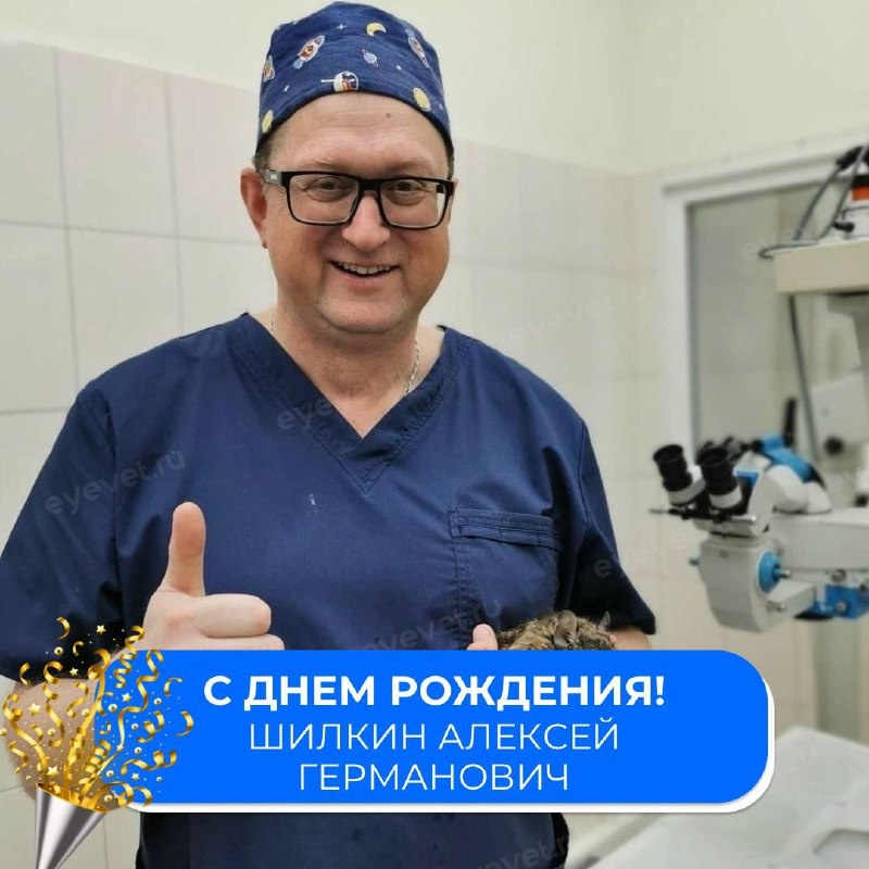 🎂 🎉 Сегодня мы поздравляем с днем рождения Шилкина Алексея Германовича — нашего руководителя и ведущего офтальмолога, чье имя давно стало ассоциироваться с высоким уровнем ветеринарной офтальмологии в Москве. Благодаря вашему опыту сотни питомцев получают шанс на здоровое зрение и качественную помощь. Спасибо за вашу работу и вклад в развитие ветеринарной офтальмологии города 🫶🏻 Желаем здоровья, благополучия, новых профессиональных побед и личного вдохновения. С днем рождения! 🎉