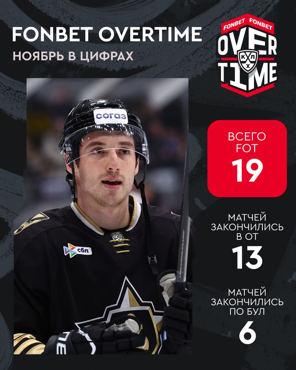 Ноябрь в Фонбет Чемпионате КХЛ оказался напряженным: болельщики стали свидетелями 19 матчей, завершившихся в #FONBETOVERTIME🚨 Cделать свой прогноз по количеству овертаймов в декабре и тому, какая команда может возглавить рейтинг по их числу, можно на сайте.