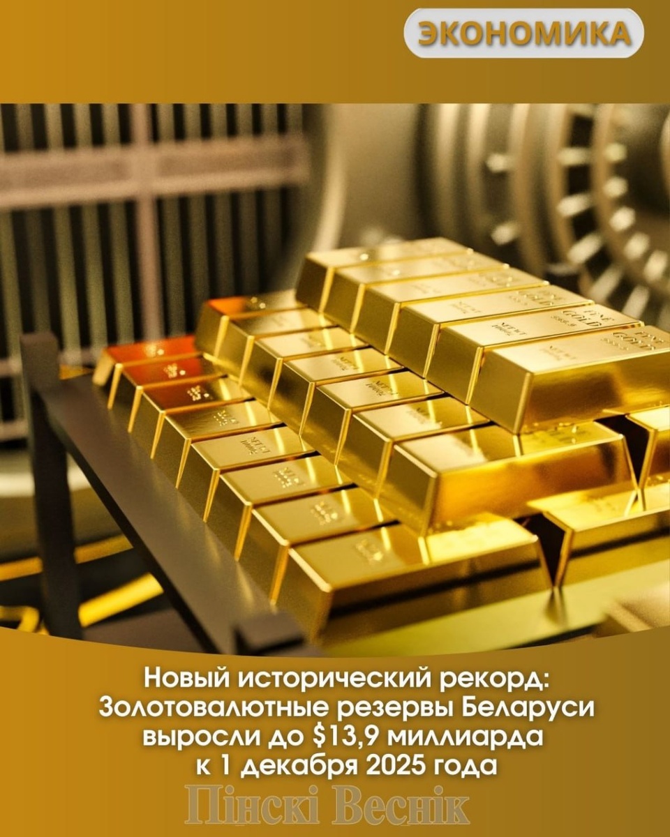 ☑️Исторический рекорд! Золотовалютные резервы Беларуси к 1 декабря 2025 года достигли $13,9 млрд! 💰 За ноябрь этот показатель вырос на $177,2 млн (1,3%). 📎Основная часть — монетарное золото ($7,25 млрд, +$314,8 млн), иностранная валюта составила $5,24 млрд (снижение на $125,9 млн). 🔥 Целевой показатель на конец 2025 года ($7,1 млрд) значительно перевыполнен! @Пинский Вестник 📱Ютуб 📱ВК 📱ИНСТАГРАМ 📱ОК 📱ФЕЙСБУК 📱ТИК ТОК Прислать новость
