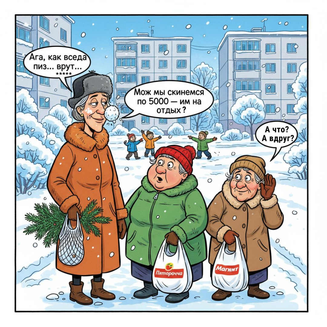 Вице-спикер Борис Чернышов решил сыграть в Деда Мороза и предложил ввести «Новогодний капитал» — 👉 по 5 000 рублей каждому пенсионеру за пару недель до боя курантов. Идея хорошая: старики смогут заранее купить мандарины, майонез и успокоительное перед чтением новостей. Министру труда уже отправили письмо. А эксперты уже отправили инициативу… в корзину вероятностей. Потому что где деньги, Зин? ☝️ В бюджете дефицит 2,6% ВВП, а свободных рублей меньше, чем скидок в магазинах 31 декабря. Ни федеральный, ни региональные бюджеты эти расходы не закладывали — так что идея зависает в воздухе, как гирлянда на соплях. 🤩 И даже если выплату дадут — пять тысяч хватит лишь на один поход в праздничный магазин. Подумаешь, в 2016 году уже раздавали по пять тысяч: 3% пенсионеров обрадовались, остальные честно сказали: «Спасибо, конечно, но индексация была бы повкуснее». Проблемы-то те же: пенсии растут строго по инфляции, а цены — строго без тормозов. И каждый год депутаты вспоминают о стариках как о