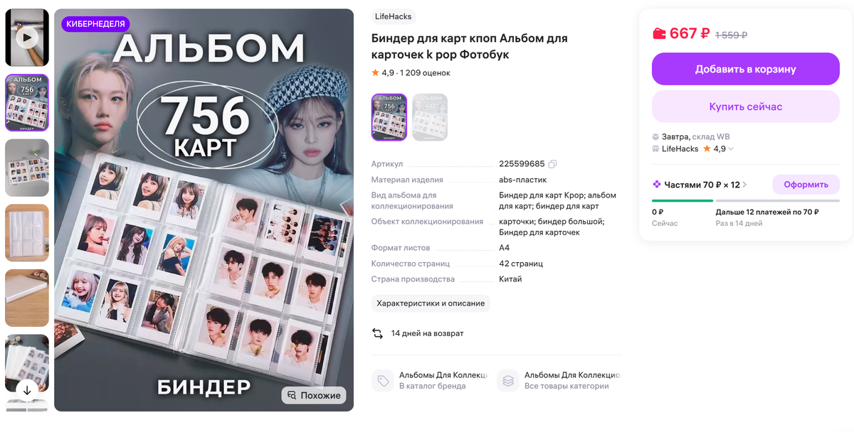 Друзья, мы тут с вами недавно буквально обсуждали в комментариях тему хранения семян. Марина 55 нам рассказала про биндеры для коллекционирования карточек поп-артистов, которые она приспособила для хранения семян. И я тоже пошла изучать этот вопрос. Но у меня на повестке дня хранение цветных пакетиков, которых нереально много, можно уже магазин открывать. И они меня беспокоят в первую очередь. Очень неудобно хранить пакетики в коробках, долго приходится перебирать и искать, особенно когда делаю выборку к посадке. Да, у меня в коробках все рассортировано. Томаты сложены пачками по окраскам, отдельно деты и индеты, отдельно мелкоплодные и черри, но не наглядно. И вот тут-то меня посетила идея. А что если посмотреть файлы обычные А4 с разделениями, которые по размеру подходят для цветных пакетиков семян? И пошла я на маркетплейсы!))) Начала с биндеров. Вот такой альбом вполне пойдет для хранения мелких самосборных пакетиков. Мне такой подходит только для части семян. Все семена, которые