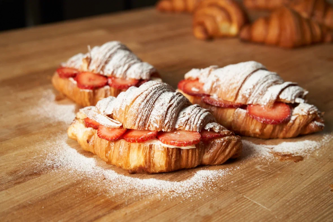 Традиционный французский круассан считается безупречным, однако добавление к нему воздушного крема и спелой клубники превращает его в гастрономический шедевр! Ключевым моментом является строгое соблюдение рецептуры и использование высококачественных ингредиентов, в особенности сливочного масла для создания слоёной структуры. Делимся с вами подробными рецептами лучшего слоеного теста для круассанов и изысканной кремовой начинкой с добавлением свежих ягод. Ингредиенты: Тесто: СуперМука для слоёных изделий - 1000 г Вода со льдом - 420 г Сахар - 140 г Масло сливочное - 125 г Яйцо - 50 г Дрожжи прессованные - 45 г Соль - 20 г Крем: Молоко - 250 г Сахар - 60 г Желток - 60 г Крахмал кукурузный - 25 г Сливочное масло - 25 г Ванильная паста - 1/2ч.л. Сливки 33% - 150 г Для раскатки: Масло сливочное 85.5% - 500 г Приготовление: 1. Замес теста