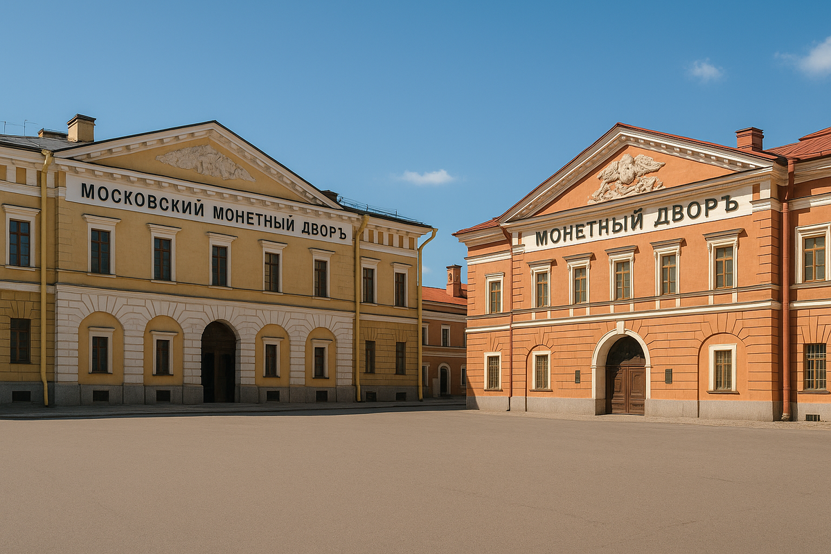 Отличия в штемпелях, стандартах, тиражах, металлах и рабочих процессах приводят к тому, что одни монеты становятся редкостями, а другие — массовыми. Разберём, чем отличаются монетные дворы, и какие из них создавали самые дорогие экземпляры современной нумизматики. 🏛️ 1. Московский монетный двор (ММД) Основан в 1942 году, и с того времени ММД стал крупнейшим производителем монет в стране. Особенности ММД: высокие тиражи обычных монет; большое количество технических линий → больше браков; большое разнообразие штемпелей, особенно в 1990-х–2000-х; многие редкие разновидности выпущены именно здесь. Самые известные редкости ММД: 5 рублей 1999 года; 1 рубль 1997 (узкий кант и редкий орёл); 50 копеек 2007 (широкий кант); множество редких