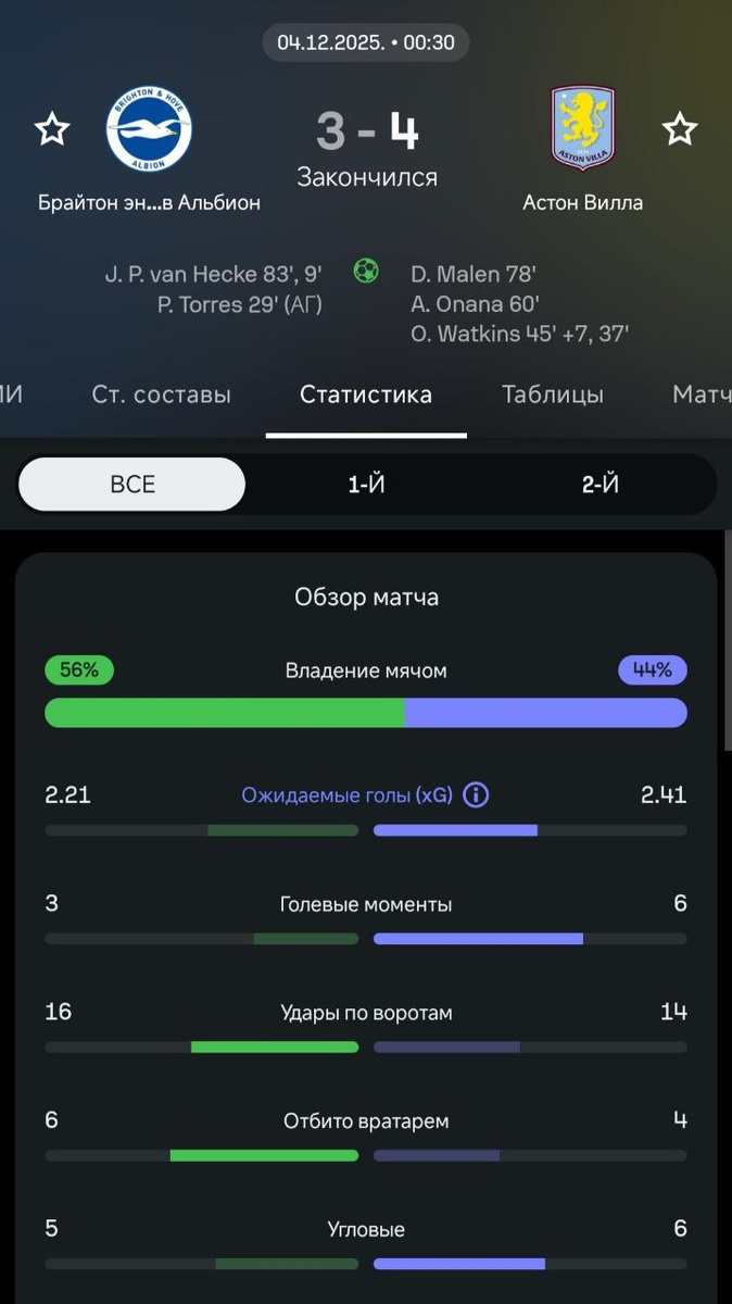С каждым сезоном оборона команд АПЛ становится всё хуже. И в этом году просадка заметна уже не только в защите, но и в игровом рисунке в целом. То, что «Брайтон» и «Астон Вилла» держались в топе до очной встречи, удивляет больше всего. Команда Эмери даже поднялась на 3 место... Команды, которые ещё недавно считались эталонами развития, за 13 матчей нового сезона не показывают никакого прогресса в этом году. Вчерашний 14-й тур только подсветил это ещё сильнее. Счёт 3:4, возможно, показатель зрелищности. Но куда больше он говорит о слабой организации обороны обеих команд. Просто попустительство в защите на протяжении всего матча. И, наверное, поэтому меня в последние годы всё меньше восхищает Премьер-лига. Она всё ещё драйвовая, мощная, с крутыми игроками. Но иногда хочется увидеть другую плоскость: дуэль тренерских идей с ограниченным ресурсом, игру умов, а не только чистую физику, скорость и прессинг с лучшими футболистами мира, которыми АПЛ так гордится. Но на самом деле из дейст