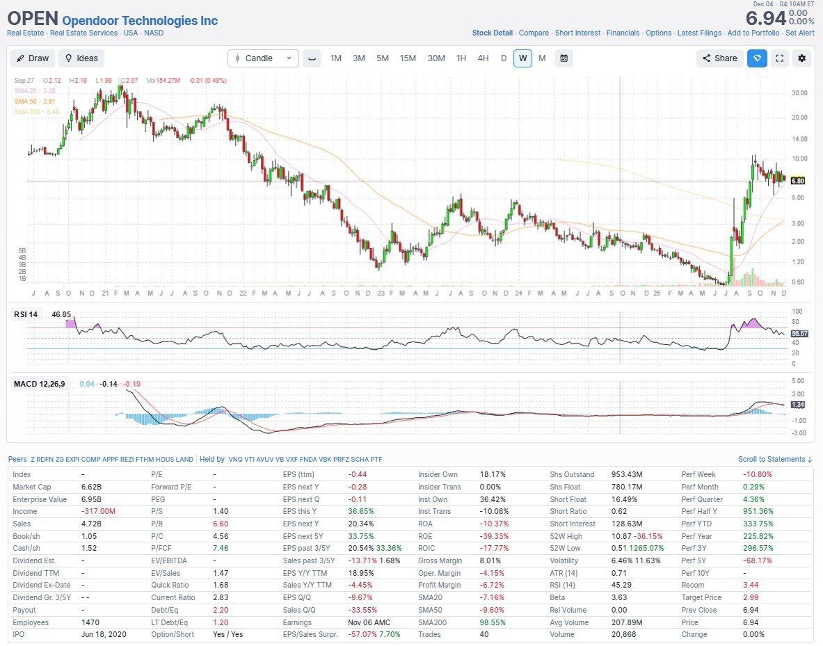 В ответ на пост ⚡️Динамика цен акций #OPEN⚡️ Акции Opendoor выросли на 1013,8% за последние 6 месяцев, превысив падение отрасли на 6,1%. С точки зрения оценки, акции #OPEN торгуются с форвардным мультипликатором цены к продажам (P/S) 1,1X, что значительно ниже среднего показателя по отрасли, составляющего 4,79X. Консенсус-прогноз по убытку OPEN в 2025 г на акцию снизился до 23 центов за последние 30 дней. Кроме того, прогнозируемый показатель указывает на снижение убытка по сравнению с убытком прошлого года в 37 центов на акцию. @Go_Invest_Private_bot
