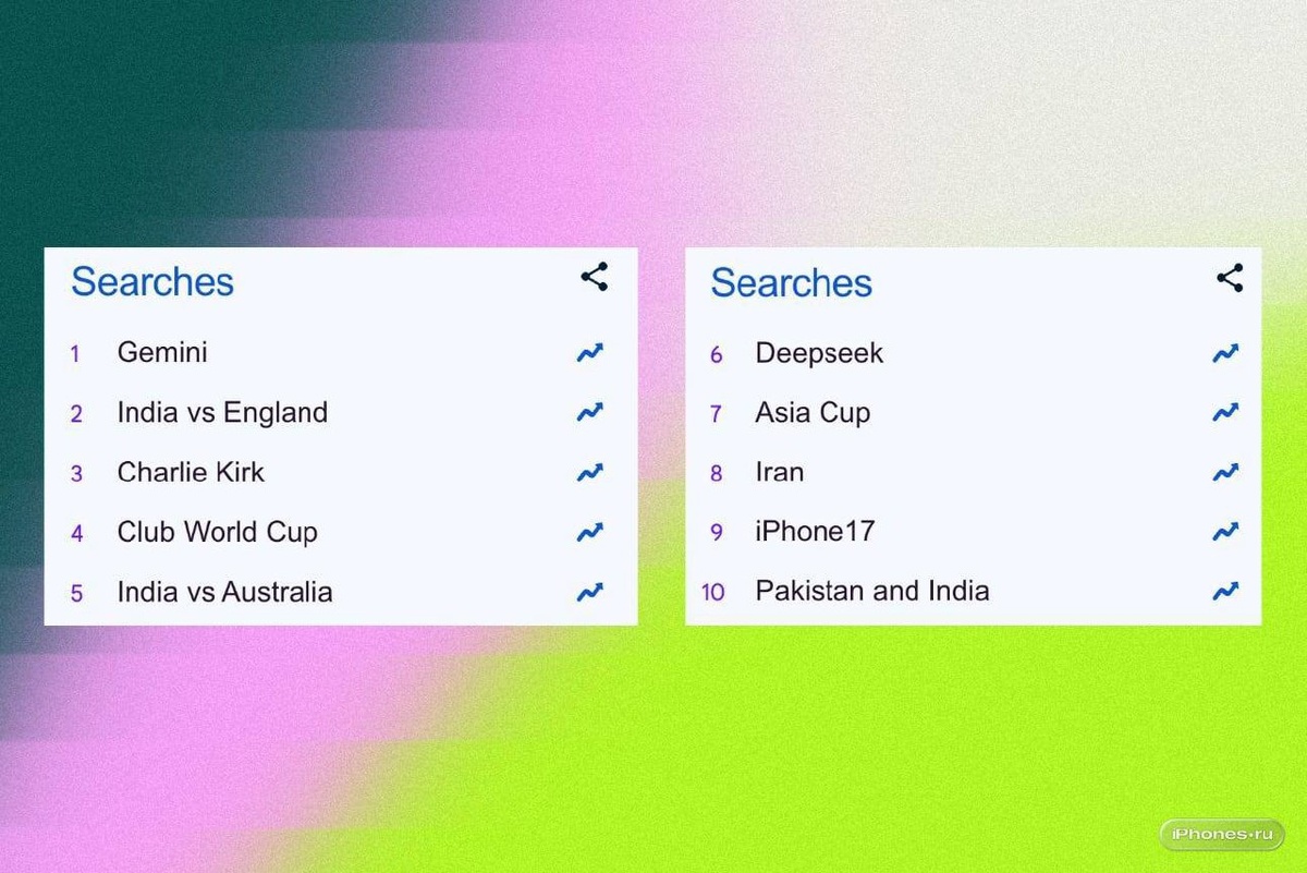 Gemini - самый популярный поисковой запрос года в Google. Из других ИИ есть только DeepSeek. Он занял шестое место. На девятом месте - iPhone 17 и он единственный смартфон в рейтинге.