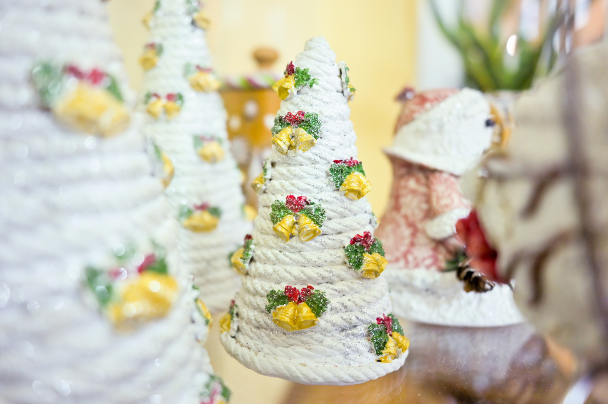 Выставка мастера декоративно‑прикладного искусства Ирины Шинкаренко — настоящее погружение в атмосферу Рождества и Нового года. В нижней части выставочной витрины расположены новогодние шары — большие, блестящие, с милыми праздничными рисунками и пышными бантами. Сразу хочется остановиться, рассмотреть их поближе и… забрать домой, на ёлочку! Правда, им не место в холодной стеклянной витрине — они так и просятся в дом, чтобы создавать уют и радовать домочадцев. Небольшие декоративные ёлочки — отдельная тема. На выставке нашлось место и настольным красавицам в снегу, и прянично‑красным малюткам, и бело‑синему Рождественскому дереву, украшенному лентами. Именно они во многом задают тон и настроение всей экспозиции. Средняя часть витрины — акцентная: здесь расположились фигурки и коллажи преимущественно в красных тонах. Тут притаился миниатюрный Дедушка Мороз, чем‑то напоминающий сказочного оловянного солдатика и при этом совершенно озябший от сибирских морозов. Охраняют его покой снегири: