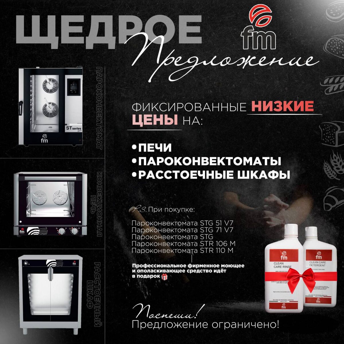 ЩЕДРЫЕ предложения продолжаются… Мы снизили и зафиксировали цены на Печи, Пароконвектоматы, Расстоечные шкафы нашего эксклюзивного ✨бренда 🤩 FM (Испания🇪🇸) Всё, для того, чтобы вы могли в деле оценить преимущества и надежность бренда, которому доверяют во всём Мире! Со всем ассортиментом оборудования 🤩 можно ознакомиться на нашем сайте - ЗДЕСЬ 👩💻🧑💻А ваши Персональные Менеджеры компании ❄️Росхолод сделают лучшее предложение! Также приятный сюрприз для вас🎁: профессиональное фирменное моющее и ополаскивающее средство идет в подарок к моделям: 🔵Пароконвектомат STG 51 V7 🔵Пароконвектомат STG 71 V7 🔵Пароконвектомат STG 111 V7 🔵Пароконвектомат STR 106 M 🔵Пароконвектомат STR 110 M * предложение ограничено Не сомневайтесь! Выбирайте 🤩FM! Для оформления заказа вам помогут: 🖤Сайт Росхолод 🖤Бот телеграм (расскажет вам о наличии и цене) 📲Звонок персональному менеджеру / по номеру телефона 8-800-200-31-30