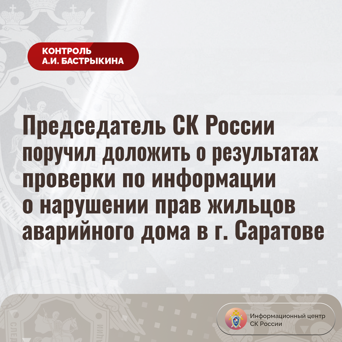 Председатель СК России поручил доложить о результатах проверки по информации о нарушении прав жильцов аварийного дома в г. Саратове