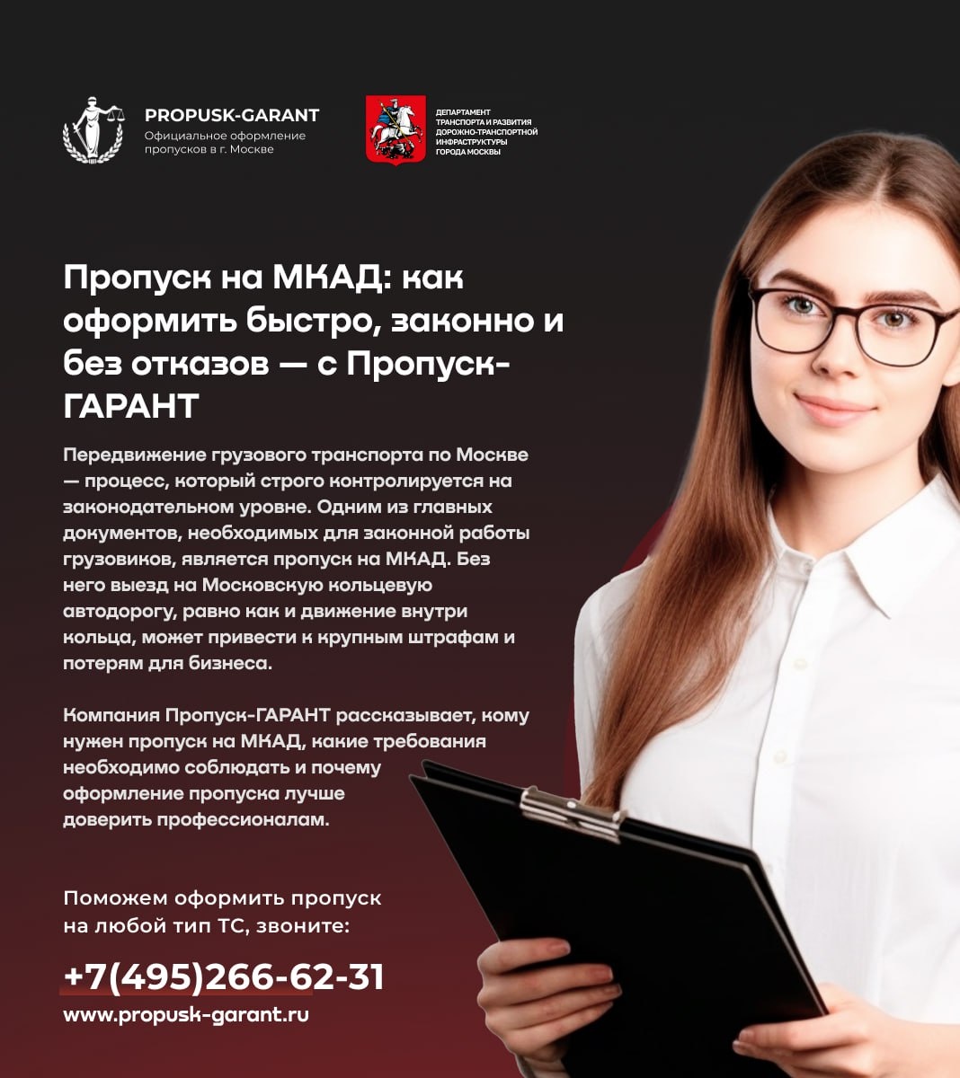 Передвижение грузового транспорта по Москве — процесс, который строго контролируется на законодательном уровне. Одним из главных документов, необходимых для законной работы грузовиков, является пропуск на МКАД. Без него выезд на Московскую кольцевую автодорогу, равно как и движение внутри кольца, может привести к крупным штрафам и потерям для бизнеса. Компания Пропуск-ГАРАНТ рассказывает, кому нужен пропуск на МКАД, какие требования необходимо соблюдать и почему оформление пропуска лучше доверить профессионалам. Почему необходим пропуск на МКАД? МКАД — это крупнейшая транспортная артерия Москвы, которая ежедневно принимает колоссальные потоки машин. Для снижения нагрузки и повышения безопасности действует строгий режим движения грузового транспорта. Пропуск на МКАД обязателен для всех грузовых автомобилей массой более 3,5 тонн. Без действующего разрешения движение по МКАД и зоне внутри него до ТТК запрещено. За нарушение предусмотрены штрафы: 📸 камера зафиксировала — 10 000 рубл