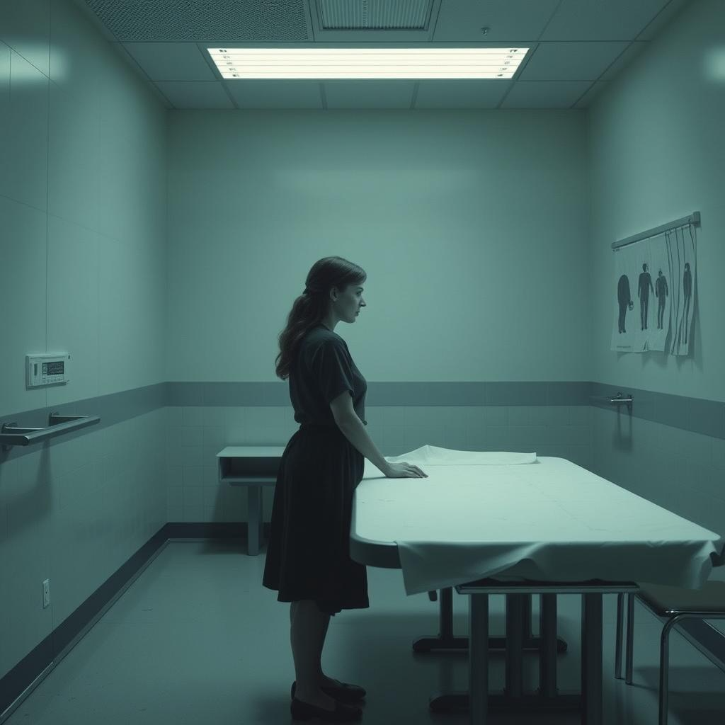 Внутри её охватил знакомый, тошнотворный запах больницы – хлорка, лекарства, сырость и под ним – сладковатый, леденящий душу шлейф смерти. Длинный коридор был освещен редкими тусклыми лампами дневного света, некоторые мигали, отбрасывая прыгающие тени. Стены были выкрашены в грязно-зеленый цвет, местами облупленные. Где-то далеко капала вода. Она шла, стараясь ступать бесшумно, прижимая сумку к груди, как щит.