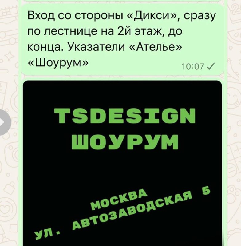Если зайти на Яндекс карты и ввести в поиск название моего бренда tsdesign, то появится ссылка на мой шоурум, вот эта Tsdesign Автозаводская ул., 5, Москва https://yandex.ru/maps/org/tsdesign/201836574746?si=k6wnc17uwzcjp8ynw90mvnw4dg