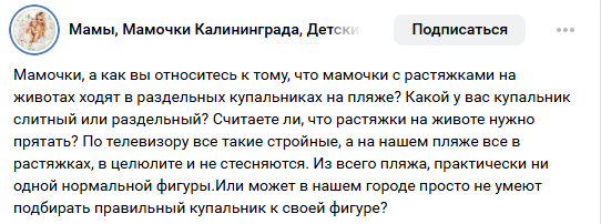 «Родила 4 месяца назад, живот, растяжки, лишний вес, раздельный купальник, короче полный комплект для хейта!»