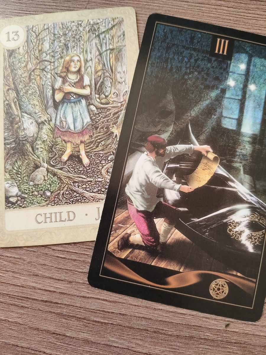 Сочетание карт «Ребёнок» из колоды Ленорман и «3 Пентаклей» из Таро может символизировать начало нового проекта или дела, которое требует внимания и заботы, как ребёнок. Это может быть творческий или профессиональный проект, требующий навыков и умений, представленных картой «3 Пентаклей».