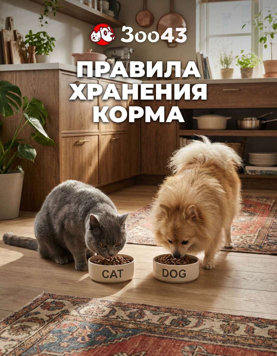 Вы задумывались: правильно ли вы храните сухой и влажный корм? Ниже — простые рекомендации, которые помогают сохранить полезные свойства рациона на более длительный срок. Можно сохранить и поделиться с друзьями 💚 Нарушение условий хранения приводит к потере питательных веществ, окислению жиров и росту бактерий. Соблюдение несложных принципов помогает избежать таких последствий. Сухой корм 🔹 Лучше хранить корм в оригинальном пакете, который плотно закрывается после каждого использования. 🔹 При желании пакет помещается в герметичный контейнер — это добавляет защиту от воздуха и влаги. 🔹 Самые нежелательные факторы — сырость, яркое солнце и резкие перепады температуры. 🔹 Комфортный температурный диапазон: +5…+25°C. Если корм пересыпается 💥 🔹 Подходит чистая, сухая ёмкость из пищевого пластика или металла. 🔹 Смешивание остатков старого корма с новым снижает качество. 🔹 Упаковку от производителя с датой выпуска и сроком годности лучше сохранить. Влажный корм (паучи и консервы) 🔹