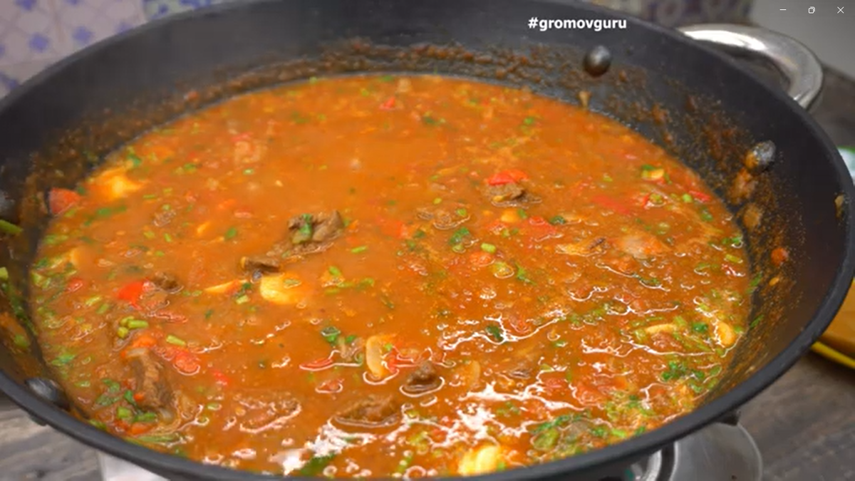 Иногда хочется приготовить мясное блюдо, которое выглядит эффектно, пахнет так, что сбегаются все домочадцы, но при этом готовится без сложных этапов. Этот вариант говядины по-грузински — как раз из такой серии. Всё держится на правильном маринаде, щедрых овощах и наборах специй, которые дают насыщенный, характерный вкус. Готовлю его в казане или глубокой сковороде — мясо получается мягким, ароматным и отлично подходит и для буднего ужина, и для подачи на стол, когда приходят гости. Ингредиенты Мясо и маринад: Говядина — 800 г Аджика грузинская — 1 ч. л. Для жарки и тушения: Растительное масло — для обжарки Лук — 600 г Болгарский перец — 600 г Томатная паста — 2 ст. л. Помидоры — 800 г Чили перец — по вкусу Специи: Паприка сладкая — 1 ч. л. Кориандр молотый — 1 ч. л. Хмели-сунели — 1 ч. л. Соль — по вкусу В конце: Кинза — 30 г Петрушка — 30 г Чеснок — 4–5 зубчиков Зёрна граната — для украшения Процесс приготовления 1. Маринад Говядину нарезаю тонкими пластинками — чем тоньше, тем бы