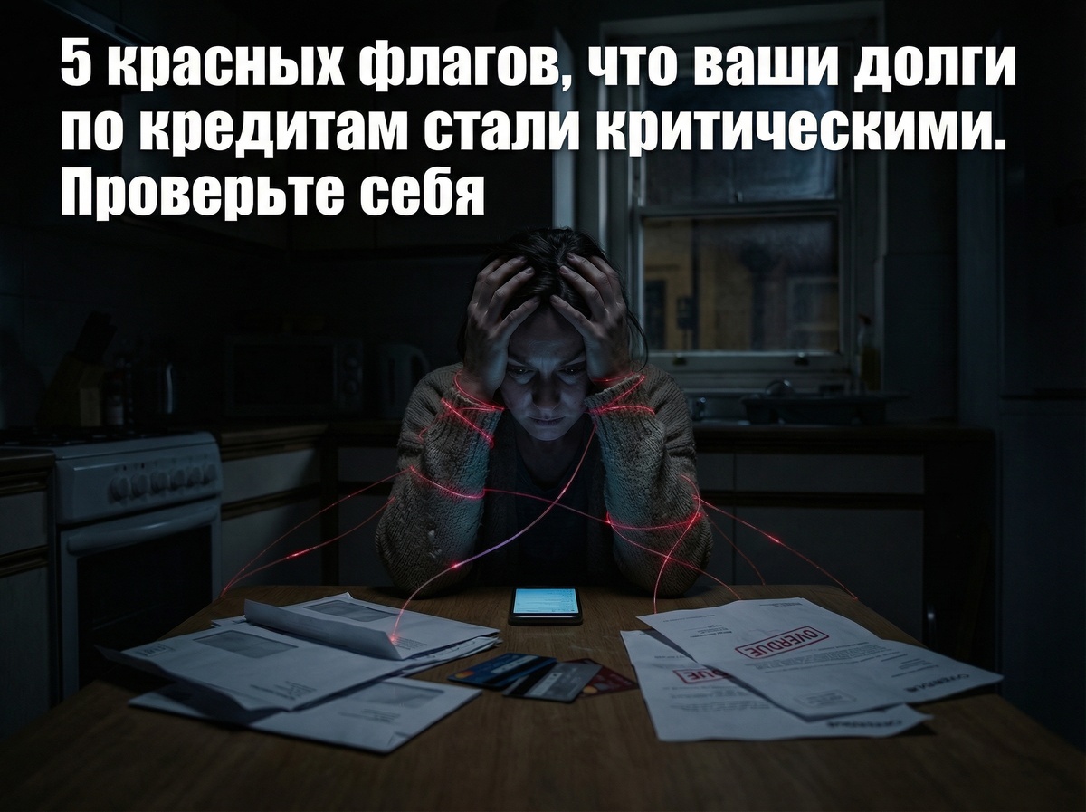 - Больше половины дохода уходит на кредиты. Посчитайте, если после всех обязательных платежей по долгам у вас остается меньше 50% от зарплаты, это критическая черта. Это значит, что вы больше не управляете своими деньгами. Вы работаете не на свою семью и свое будущее, а на обслуживание банковских счетов. Жизнь превращается в выживание от зарплаты до платежа.