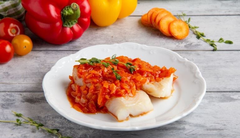 Любая рыба получается вкусной, если ее приготовить должным образом. Не секрет, что это полезный и необходимый продукт, наряду с мясом и овощами. Поэтому рыбное блюдо должно быть в меню каждую неделю. Рыба под маринадом, запеченная в духовке Такое рыбное блюдо можно подавать как в теплом, так и в охлажденном виде. Необходимые продукты: полтора килограмма рыбы (подойдет, например, кета, минтай, треска или семга); пять морковок среднего размера; четыре штуки репчатого лука; одна чайная ложка соли; одна столовая ложка сахара; три-четыре столовых ложки томатной пасты; три стакана воды; четыре-пять горошин черного перца; два лавровых листа; одна-две гвоздики; растительное масло для жарки. Приготовление: 1. Рыбу нарезаем на порционные куски. Обваливаем каждый кусок в муке, смешанной с солью, с обеих сторон. 2. Обжариваем на сковороде с разогретым растительным маслом до легкой золотистости. Выкладываем обжаренные куски на бумажные полотенца, чтобы убрать излишки масла. 3. Лук шинкуем полук