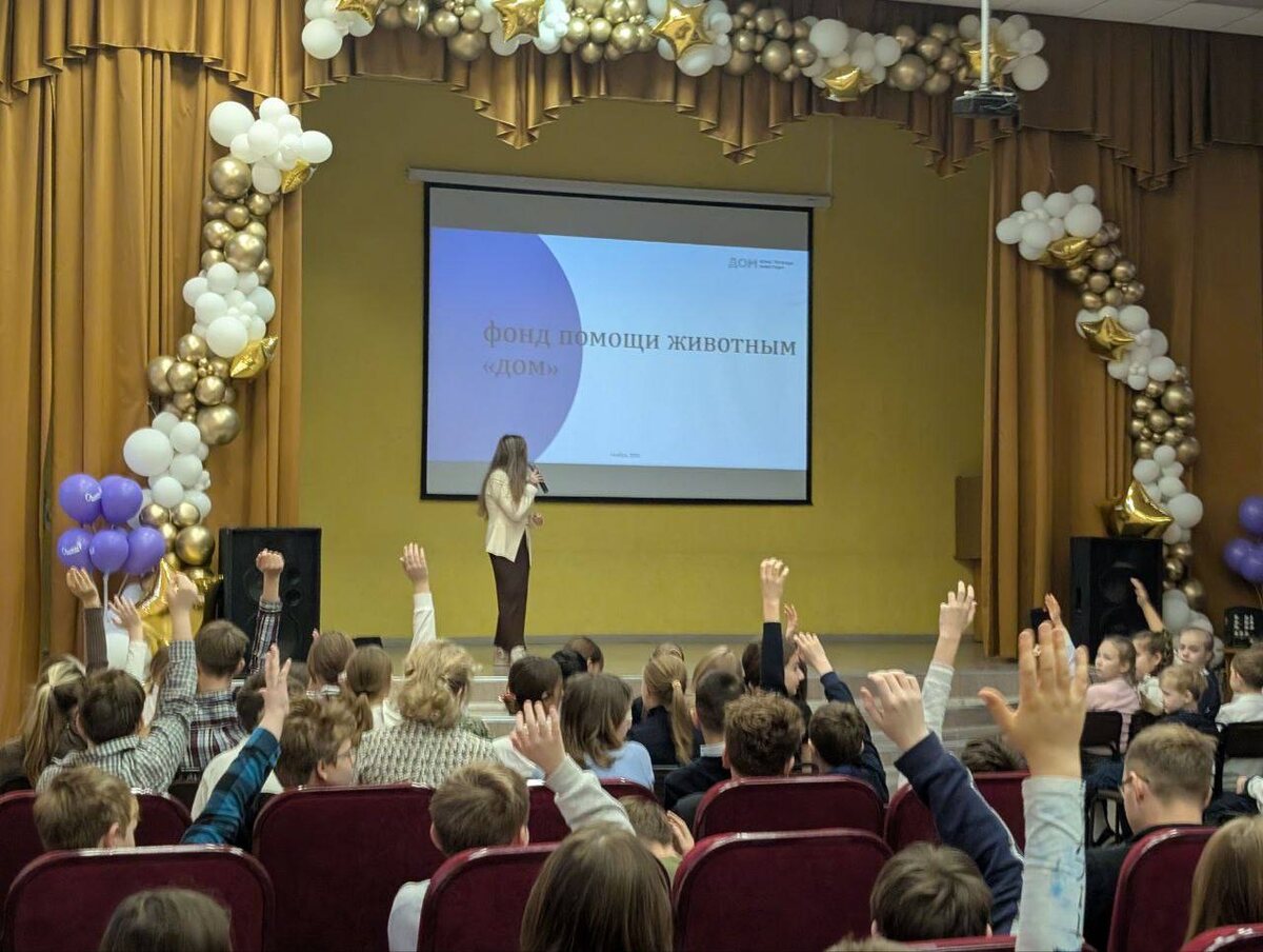 ПОМОЩЬ БРАТЬЯМ НАШИМ МЕНЬШИМ Рассказывает ученица 11 «Б» Александра КОВАЛЕНКО, участница Движения Первых: - Всем привет! Меня зовут Саша, я ученица 11 Б класса. С 14 лет я занимаюсь волонтерством и в 15 лет я впервые попала на мероприятие фонда помощи бездомным животным ,,ДОМ" и до сих пор нахожусь с ними) Фонд ,,ДОМ" имеет такое название не просто так, мы помогает бездомным котикам и собачкам обрести свой дом и найти любящую семью, с помощью выставок пристройств ,,Ждут Дома" , а также регулярно помогаем различным приютам) Директор фонда Александра Бондарева приехала к нам в школу и рассказала для 5,6,7 классов про сам фонд, а также про то как в современных реалиях можно помочь бездомным животным! Среди классов начался сбор корма и других нужных принадлежностей для содержания животных. Детям было очень интересно послушать про кошечек и собачек, а многие даже лично подходили и интересовались как и где можно нам помочь! Помогайте бездомным животным с нами! Мы будем рады любой помо
