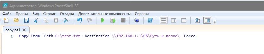 -Destination \\192.168.1.1\C$\Путь к папке\ - указываем куда будем копировать наш файл Ну вот и все, запускаем скрипт, проверяем!