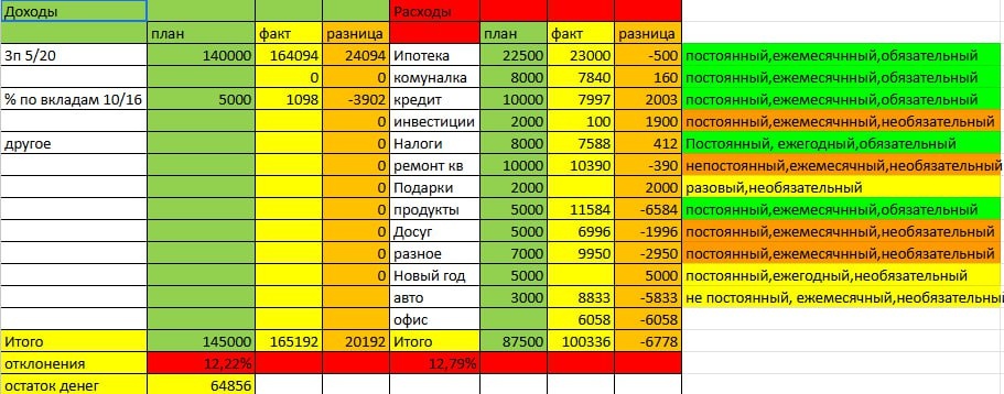Посчитайте итоги бюджета за прошедший месяц