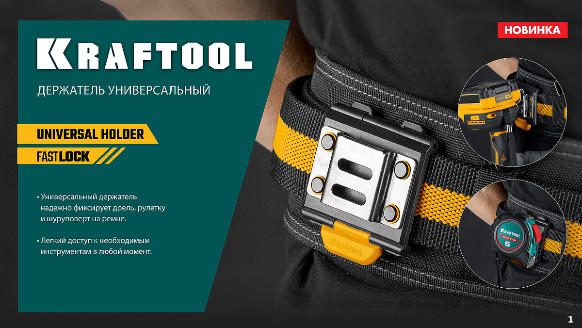 Держатель универсальный KRAFTOOL (арт. 387790) для системы быстрого крепления FASTLOCK применяется в качестве крепёжного элемента для строительных сумок и поясов KRAFTOOL. Подходит для использования с широким спектром инструмента. Купить на сайте MaxMaster