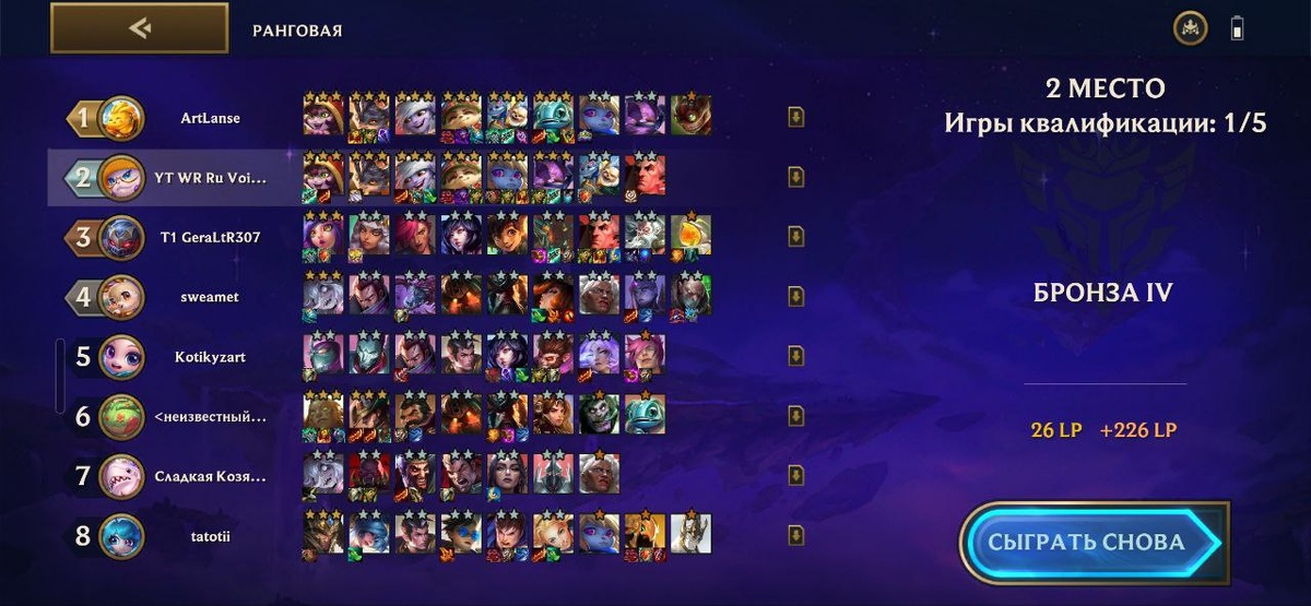 Не, ну Йордлы как всегда тащат. Было бы первое место, если чуваку сверху не повезло выбить себе 3-х звездочного Физза, который между прочим 4 ранга, так что Мелкие - Форевер)
