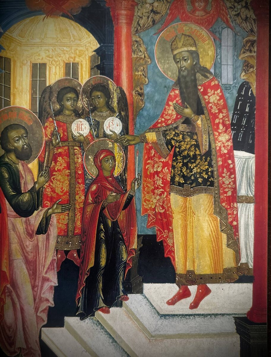 🔵 «В сей день, верные, возликуем, во псалмах и песнопениях Господу воспевая, почитая и освященную Скинию Его, одушевленный Ковчег, невместимое Слово Вместившую; ибо Она приводится Господу – необычайное дитя по плоти, и великий первосвященник Захария принимает Её с радостью, как Божию Обитель.» Стихира на «Господи воззвах».