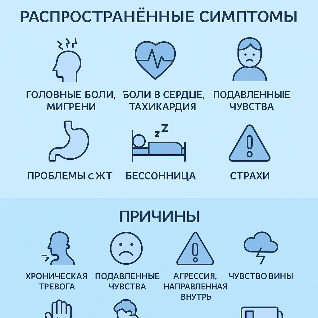 нервы реагируют первыми, тело — следом. Психосоматические заболевания — это реальные физические симптомы, которые вызваны не повреждением органов, а эмоциональным напряжением. Самые распространённые психосоматические заболевания Многие болезни, которые мы привыкли считать "обычными", на самом деле часто имеют эмоциональную природу. Вот Т