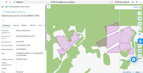 Название: Земельный участок, площадью 2239265 кв.м, кадастровый номер 43:30:380834:2780, категория земель: земли сельскохозяйственного