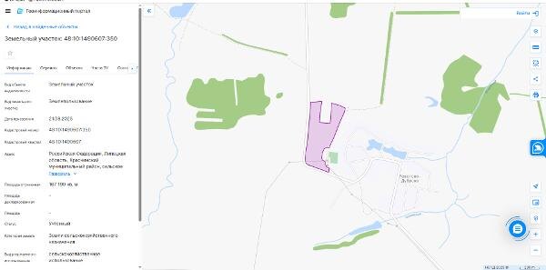 Название: Лот №1 – право на заключение договора аренды земельного участка с кадастровым номером 48:10:1490607:350, площадью 167190 кв.м