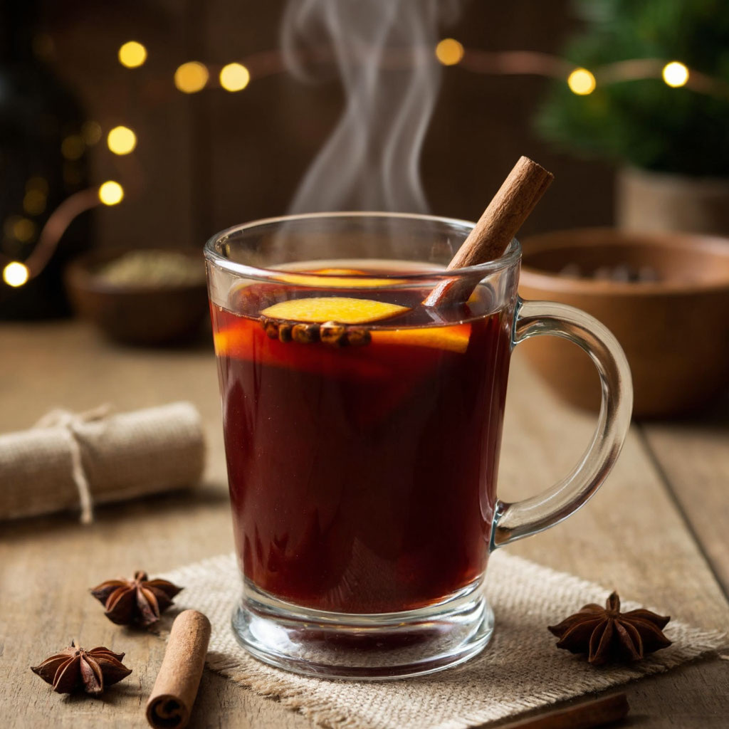 Глинтвейн — идеальный напиток для зимних праздников: ароматный, согревающий, создающий атмосферу уюта. Предлагаем проверенные рецепты (алкогольный и безалкогольный) и любопытные факты о нём. Алкогольный глинтвейн (классический) Ингредиенты: красное сухое вино — 750 мл; вода — 100 мл; сахар или мёд — 2–4 ст. л. (по вкусу); корица — 2 палочки; гвоздика — 5–6 бутонов; бадьян — 1–2 звёздочки; апельсин — 1 шт. (нарезать кружочками); лимон — ½ шт. (нарезать дольками); мускатный орех — щепотка; имбирь (свежий или молотый) — по желанию. Приготовление: В кастрюлю влейте воду, добавьте сахар/мёд и специи. Доведите до кипения на среднем огне. Уменьшите огонь, влейте вино. Не доводите до кипения — оптимальная температура 70–80 °C (появляются первые пузырьки, идёт пар). Добавьте цитрусовые, прогревайте 5–10 минут. Снимите с огня, накройте крышкой, дайте настояться 10–15 минут. Процедите и разлейте по кружкам. Подавайте горячим. Безалкогольный глинтвейн Ингредиенты: виноградный сок (тёмный) —
