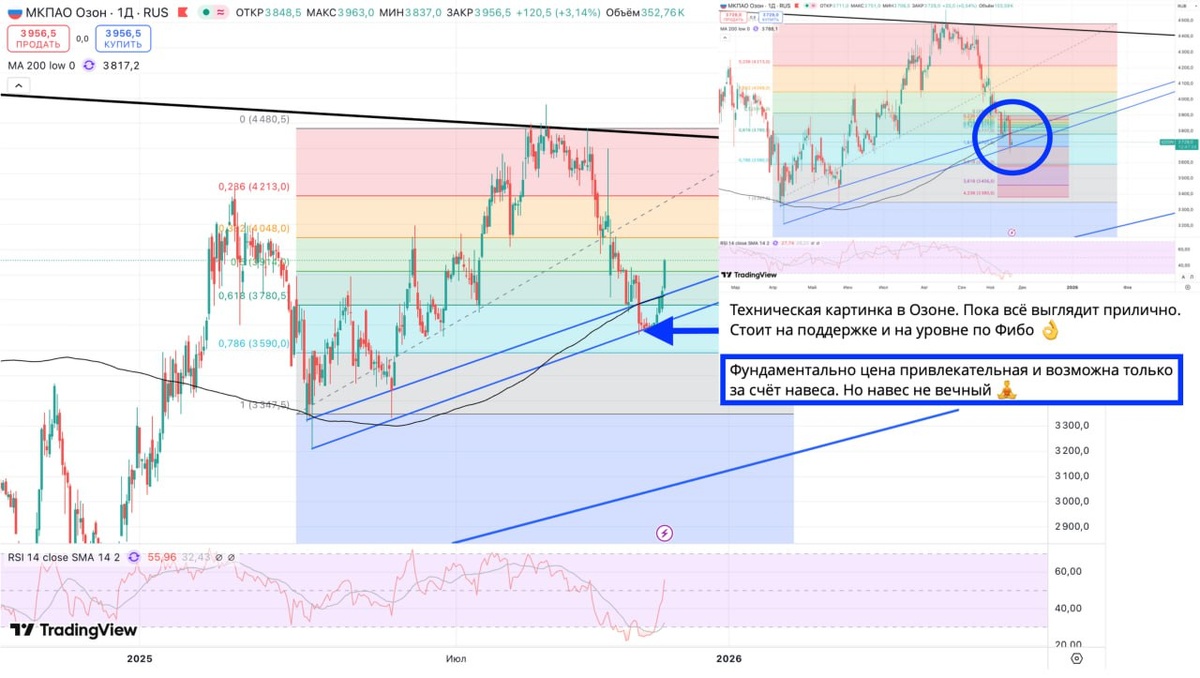 Озон бодро растёт последние дни. Такое впечатление, что агрессивный продавец навеса разгрузился и давление на цену упало 🤞 При этом, кто следит за ФУНДАМЕНТАЛОМ, те понимали, что цена была очень привлекательной (о чём не раз вам писал) 😋 Кто ждал цену по 3400 и ниже так и не дождались. Предположу, что ожидания были основаны только на технической картинке 🤔 К слову, в долгую, даже текущие цены (3960) вполне себе привлекательные 🤫 Кто хочет ясно видеть фундаметальную картину по бумагам, есть кофеин ☕️