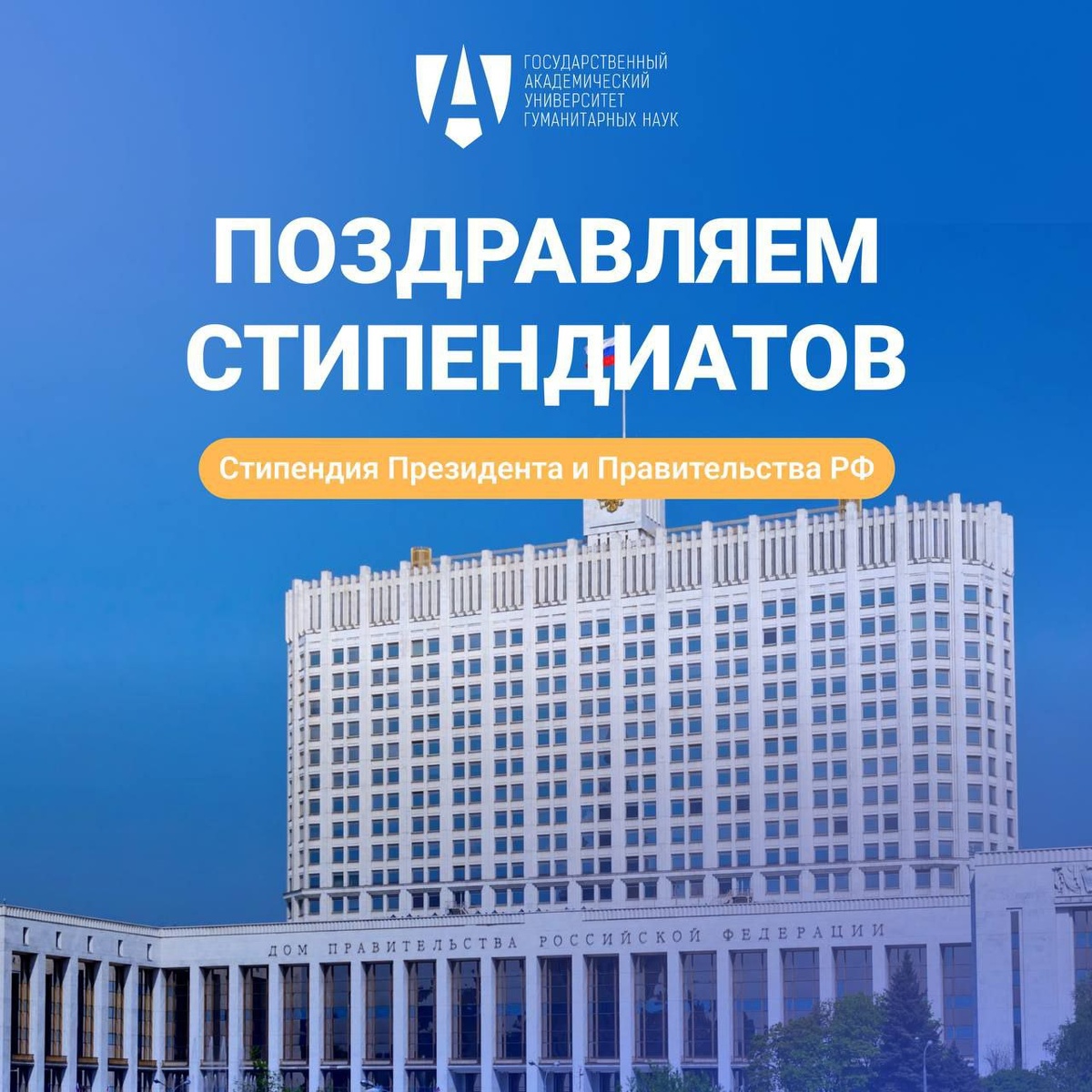 Поздравляем наших студентов с получением стипендий Правительства и Президента Российской Федерации! 🏆 По результатам конкурсного отбора на назначение стипендий Президента и Правительства Российской Федерации на 2025/26 учебный год 7 студентов ГАУГН стали победителями: 6 получат правительственную стипендию и 1 – президентскую. 🎉Победителями конкурса на назначение стипендии Правительства Российской Федерации в конкурсной группе «Гуманитарные науки» стали: ➡️ студентка 4 курса Восточного факультета Алёна Непомнящая; ➡️ студентка 2 курса магистратуры Исторического факультета Елизавета Полянская; ➡️ студентка 2 курса магистратуры Философского факультета Арина Сафина. 🎉Победителем конкурса на назначение стипендии Правительства Российской Федерации в конкурсной группе «Искусство и культура» стал: ➡️ студент 2 курса магистратуры Исторического факультета Родион Комиссаров. 🎉Победителями конкурса на назначение стипендии Правительства Российской Федерации в конкурсной группе «Науки об общ
