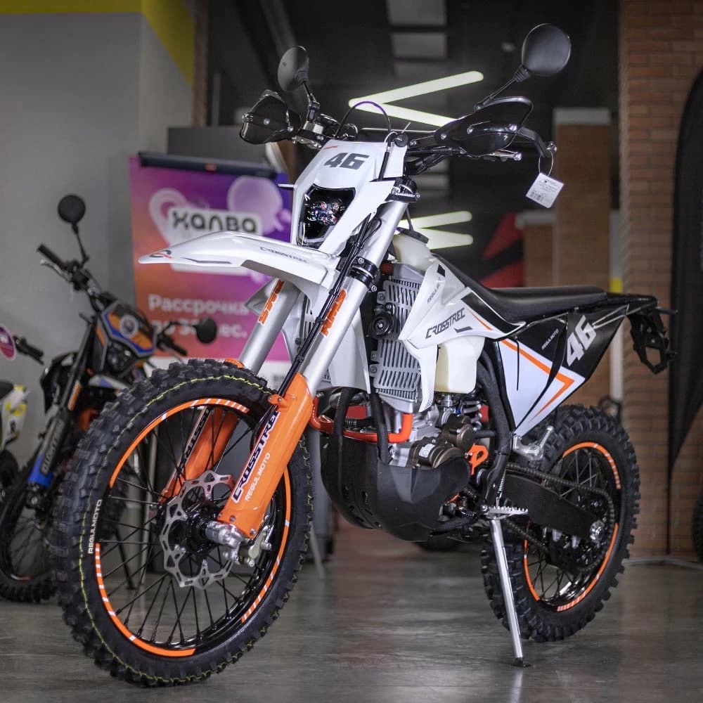 Regulmoto Crosstrec 300 — Готов к любому повороту! Не можете выбрать между бездорожьем и асфальтом? Crosstrec 300 в белом цвете предлагает идеальный баланс. Гоняй в эндуро, ставь на учет и выезжай на ДОПы ПОЧЕМУ ОН УНИВЕРСАЛЕН? Динамика и надежность: ➡️Двигатель: 1-цилиндровый 4-тактный Zongshen на 292 см³ с жидкостным охлаждением. Мощность — уверенные 28 л.с., достаточные для любых задач. ➡️Трансмиссия: 6-ступенчатая КПП и карбюратор NIBBI Racing PWK34 обеспечивают полный контроль над мощностью на трассе и в городе. ➡️Запуск: Комбинированная система (электростартер + кикстартер) — максимальная уверенность в любых условиях. Комфорт и управляемость: ➡️Рама: Легкая и прочная хромомолибденовая конструкция. ➡️Подвеска: Полностью регулируемая — перевернутая вилка (915 мм) спереди и моноамортизатор (480 мм) сзади гасят неровности любого калибра. ➡️Эргономика: Удобная высота по седлу (950 мм) для контроля и комфортная колесная база (1500 мм) для стабильности на скорости. ❗️Специальное