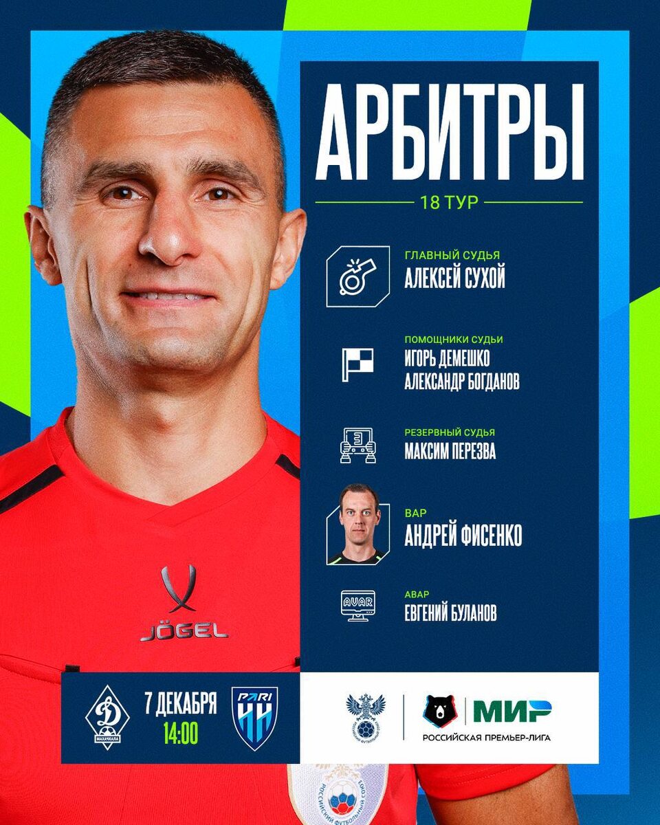 ❗️ Алексей Сухой главный арбитр матча 18 тура РПЛ Динамо Мх-Пари НН.