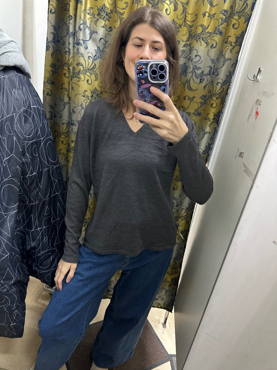 Всем моим читателям доброго времени суток 🫶 Меня зовут Оля и я очень люблю моду, гулять по секондам в поисках сокровищ, исследовать музеи и путешествовать. На прошлой неделе я была в одном из своих любимейших секондов Санкт-Петербурга, где я как правило , люблю мерить платья и прочую одежду. И сегодня я хочу показать небольшую примерку классных (по моему личному мнению) вещей, которые меня заинтересовали. Начну вот с такого классного свитера из стопроцентоной шерсти (кстати, мягкой и не колючей, а я к этому очень чувствительна). Классический серый цвет, но мне большевато. Маркс и Спенсер, причем сделано в Великобритании. У меня есть кашемировый свитер от них и он отличного качества. Цена в секонде вот такая (но я была в день скидки 30 процентов). Шерстяные свитеры, кстати у них классные, действительно качественные, но и цены кусаются слегка. Люблю бренд talbots. У них очень качественный хлопок. Цена-копейки. Очень мгкий и классный кардиган от h&m. Состав- вискоза и ангора,