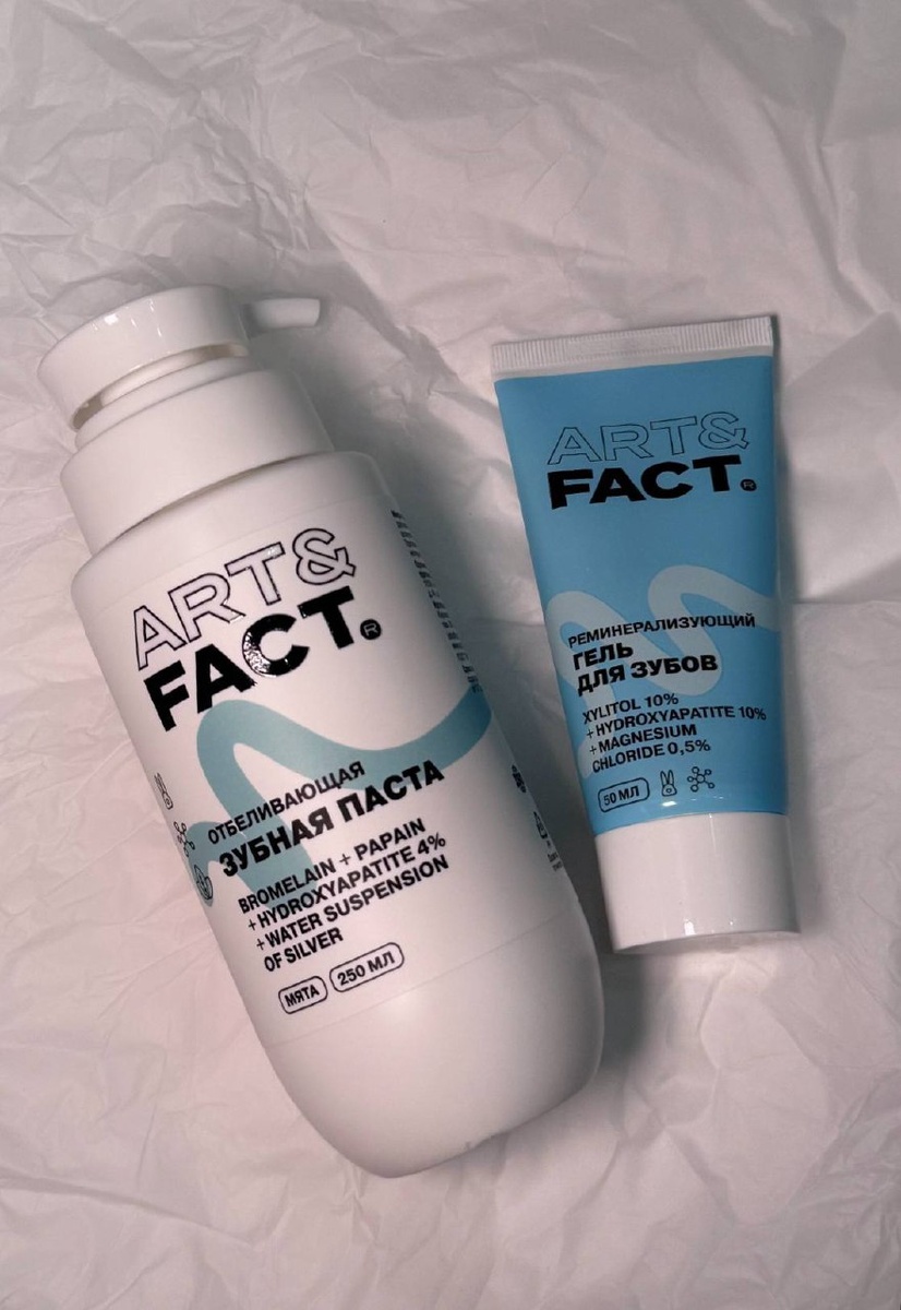 до сих пор не могу привыкнуть, что у Art&Fact теперь есть уход для полости рта😅 взяла на пробу два продукта – отбеливающую пасту и реминерализирующий гель👇 ⭐зубная паста очень удобный формат: большой объём, которого хватает надолго, и флакон с помпой, не нужно каждый раз откручивать крышку ⭐реминерализирующий гель наношу вечером после пасты, он убирает чувствительность и делает эмаль плотнее а вы уже пробовали уход от Art&Fact?🫶