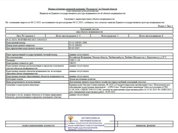Название: Земельный участок из земель населенных пунктов, расположенный по адресу: Омская область, Любинский район, с