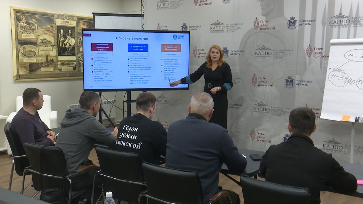 Стартовал второй очный модуль региональной кадровой программы "Герои земли Псковской". Она создана для подготовки высококвалифицированных руководителей из числа участников СВО для последующего трудоустройства в органах государственной власти и местного самоуправления. Новый образовательный блок посвящен экономике и финансам. На лекциях присутствовала Анастасия Николаева. В этом посте есть большое видео, которое не загрузилось в Дзен. Откройте оригинал поста в телеграме, чтобы его посмотреть