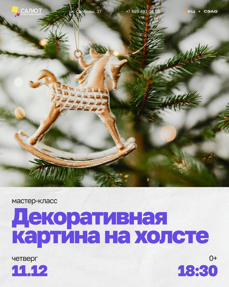 🎨 Творческий мастер-класс для малышей в КЦ «Салют»! Под чутким руководством нашего преподавателя юные творцы попробуют свои силы в необычном рисовании и создадут декоративные картины на настоящих холстах. Это не просто занятие — это маленькое путешествие в мир фантазии, красок и праздничного настроения! 🎄💫 Такой мастер-класс — прекрасная возможность сделать памятный новогодний подарок для близких и друзей, созданный руками вашего малыша ❤️ 📅 11 декабря 🕢 18:30 👶 Возраст участников: 3–7 лет 💵 Стоимость: 1000 ₽ 📞 Запись до 10 декабря: +7 (977) 975-53-40 📍 КЦ «Салют», ул. Свободы, 37 ✨ Мест немного — успевайте занять своё! ✨ #КЦСалют #ОКЦСЗАО #СалютСевероЗапад #КультурныйЦентрСалют #ДетиСалют #МастерКлассДляДетей #НовогодниеМастерКлассы #ЗимаВСалюте #СалютЗима #ТворчествоДляДетей 📱 Подписывайся на наш канал, чтобы не пропустить интересные мероприятия и мастер-классы в СЗАО!