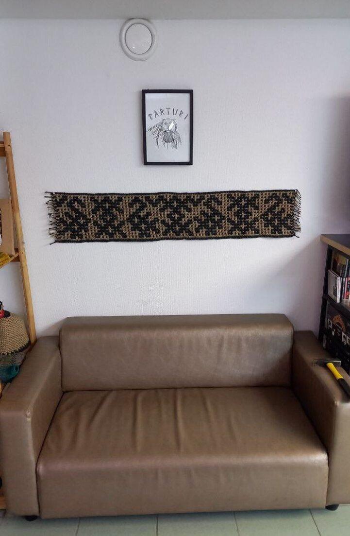 Панно. Новости наших чатов Моя подписчица @Na44i_karjala показала классную идею с панно🔥 «Задумывала дорожку на стол (узор из книги "Самый родной узор"), а муж попросил себе в студию – получилось небольшое настенное панно 😁 Джут, крючок 3,5». Клево!