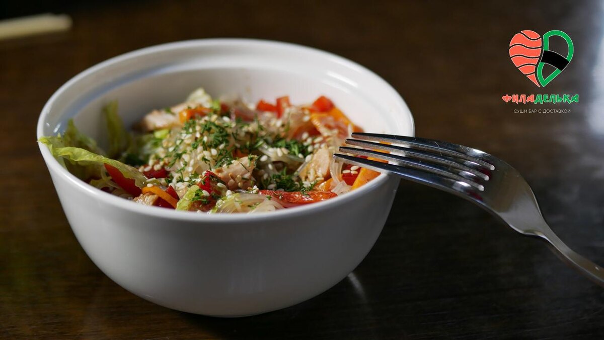 Салат "Китай" из "Филадельки": Когда вкуснее уже некуда 🍜🔥 Привет всем любителям вкусно поесть! Сегодня делимся историей о том, как случайная встреча с салатиком может перевернуть ваше представление о сочетании вкусов 😋 Этот салат называется просто - "Китай"! Прозрачные ниточки фунчозы танцуют под яркими лучиками ароматной морковки, украшенные пестрыми лепестками сладкого болгарского перца, салата айсберга и посыпанные хрустящими зернышками кунжута. А сверху парит дымок от аппетитных кусочков копченой курицы 🐣 Но это еще не все! В эту компанию вмешиваются пикантные нотки специй, легонько подчеркнутые капелькой соевого соуса и кислинкой яблочного уксуса ☝️ Вот это даааа! В общем, когда ты попробуешь этот салатик хотя бы разочек, то сразу поймешь – почему он так любим многими людьми! 🌟 Если вы ещё сомневаетесь, стоит ли заказывать именно его, скажу одно: дайте своему ротику возможность испытать такое удовольствие 🤗 Поверьте мне, ваш желудок скажет вам спасибо!