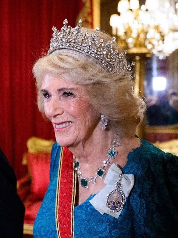 С фотками беда, но что поделать... часть 2! 💍 Королева Камилла в "Тиаре девушек Великобритании и Ирландии", серьгах-клипсах из своей грушевидной полупарюры и изумрудном ожерелье Гревилл без подвесок. Платье из итальянской поездки 💍 Принцесса Уэльская в рубиновой "Восточной тиаре" – подарок принца Альберта королеве Виктории. Серьги-люстры, подарок Кейт от Елизаветы II (из ее коллекции, на публике не носила) 💍 Герцогиня Эдинбургская в личной тиаре с аквамарином и сапфировых украшениях Graff 💍 Принцесса Анна в тиаре "Сосновый цветок", серьгах и ожерелье с акваиаринами в стиле ар-деко 💍 Герцогиня Глостерская в индийской тиаре Cartier и бриллиантах свекрови Ленты орденов: немецкий орден "За заслуги" у Камиллы, Викторианский – у Кейт и Софи, Подвязки – у Анны и Глостерской #шкатулка_роялс