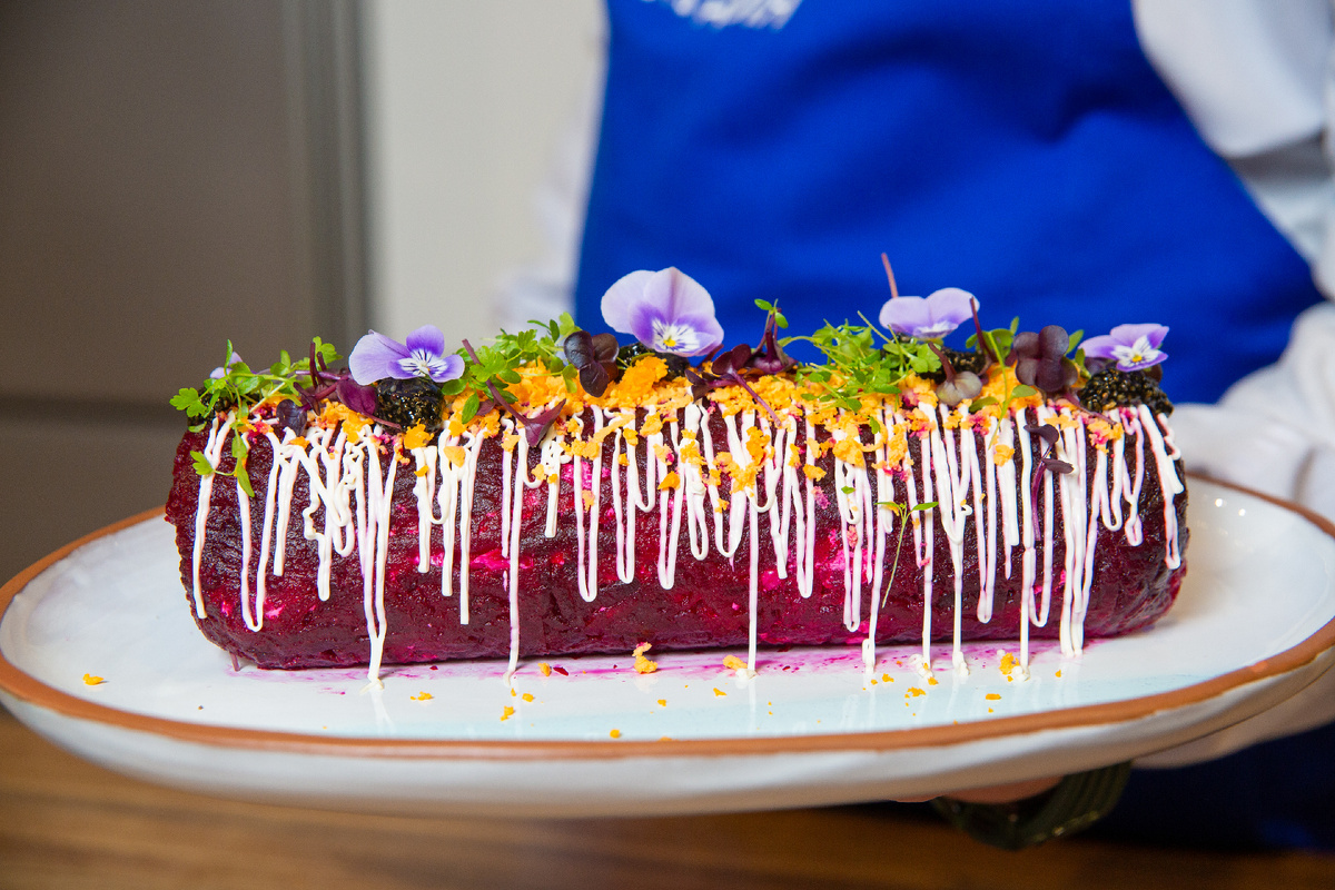 Делаем ресторанную подачу дома: вместо привычной салатной нарезки кубиком — аккуратный и эффектный рулет. Имитированная икра из чиа, микрозелень редиса и сельдерея, съедобные цветы — этот вариант «шубы» выглядит современно, аккуратно и показывает праздничную классику по-новому. Рецепт от шефа Андрея Борисова из студии Юлии Высоцкой и друга проекта CressFather. 🛒 Ингредиенты Основное: Филе сельди — 150 г Картофель отварной — 150 г Морковь отварная — 100 г Свёкла отварная — 200 г Лук красный — 30 г Яйца куриные С1 — 2 шт. Майонез — 120 г Имитированная икра (чиа): Семена чиа — 30 г Соевый соус — 30 мл Вода фильтрованная — 50 мл Масло льняное — 20 мл