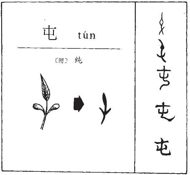 Иероглиф 屯 (zhūn) изображает росток, пробивающийся сквозь почву… т.е. растение должно приложить немало сил, чтобы проходя сквозь толщу земли выпрямиться и начать полноценно расти.