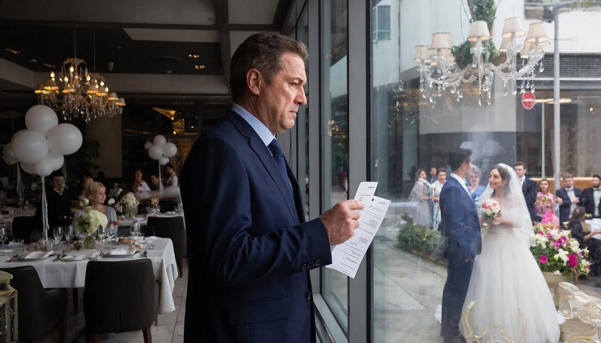 Музыка заиграла снова. Гости задвигались, официанты поспешили разносить горячее. Разговоры зашумели — сначала о скандале, потом снова о платье невесты, о еде, о чём‑то бытовом. Жизнь, как всегда, медленно взяла своё.
