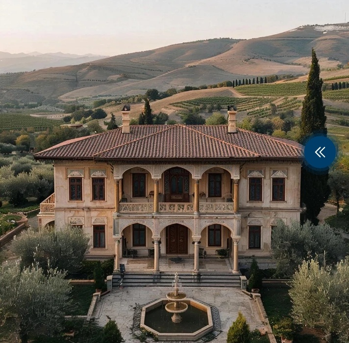 холма, откуда открывался потрясающий вид на окрестности. Территория была ухожена и аккуратно спланирована: дорожки из белого гравия вели к беседкам, укромным уголкам сада и небольшому прудику с золотыми рыбками. Стройные кипарисы и аккуратные клумбы подчеркивали симметрию композиции, создавая ощущение порядка и гармонии.