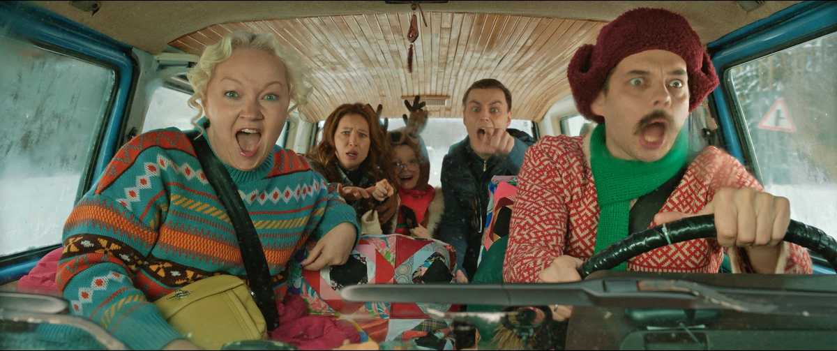 Рассказываю про новый приключенческий фильм с зимней атмосферой. Света и Антон Лебедевы собираются разводиться, но чтобы оформить документы, им нужно ехать в северный город Нежногорье, где они прописаны. Говорят, там вообще никто не разводится. Неожиданно их соседи, очень счастливая семья Бубликов – Валентин, Варя и их сын Платон – тоже едут в Нежногорье. У Бубликов есть забавный минивэн, который они называют «оленемобилем». Так Лебедевы, которым грозит развод, оказываются в одной машине с Бубликами, которые просто светятся от любви друг к другу. По дороге Бублики знакомят Свету и Антона с родителями Валентина. Дорожное кино от творческой пары Лахно и Абрютиной сначала выглядит как их очень осторожный первый шаг в режиссуре. Сам фильм построен на простых приемах: кадры чередуются между крупными планами и общими видами. Оператор Вильдан Аскаров, который тоже только начинает свой путь, очень старательно выстраивает каждую сцену. Это придает фильму более мягкий тон, отличающийся от резк